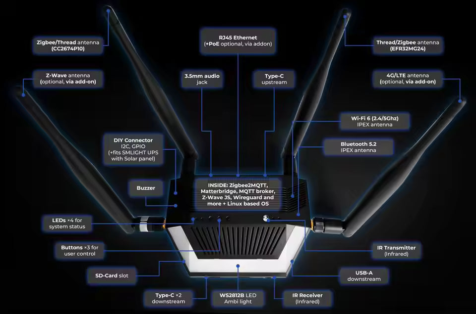 Transform your smart-home setup with the SMHUB, a premium, enterprise-grade modular smart hub by SMLIGHT that combines high reliability, modular flexibility and full local-first control.