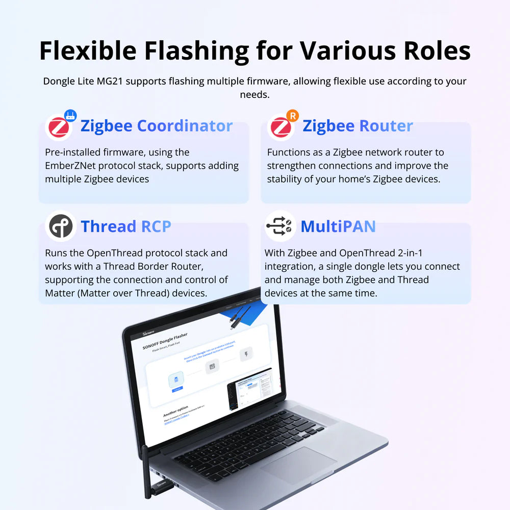 Easy to deploy, compact, and dependable, the SONOFF Dongle Lite MG21 Zigbee / Thread USB Dongle is an excellent choice for building or expanding a stable, fully local Zigbee smart home network in space-constrained environments.