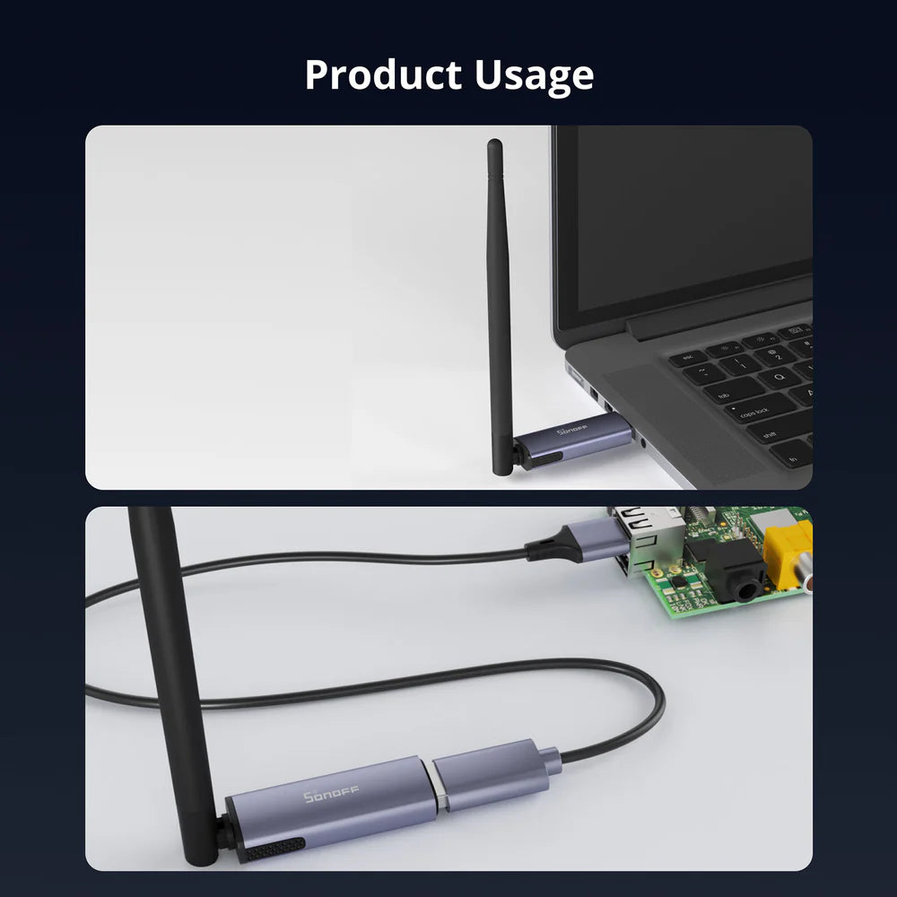 Equipped with an external high-gain antenna, the dongle delivers strong and reliable wireless performance. The default 3dBi antenna, optimized up to 4.5dBi, improves signal strength and extends network coverage for larger homes and more demanding Zigbee deployments. An included USB extension cable allows flexible positioning away from the host system, reducing electromagnetic interference and improving overall Zigbee network reliability.