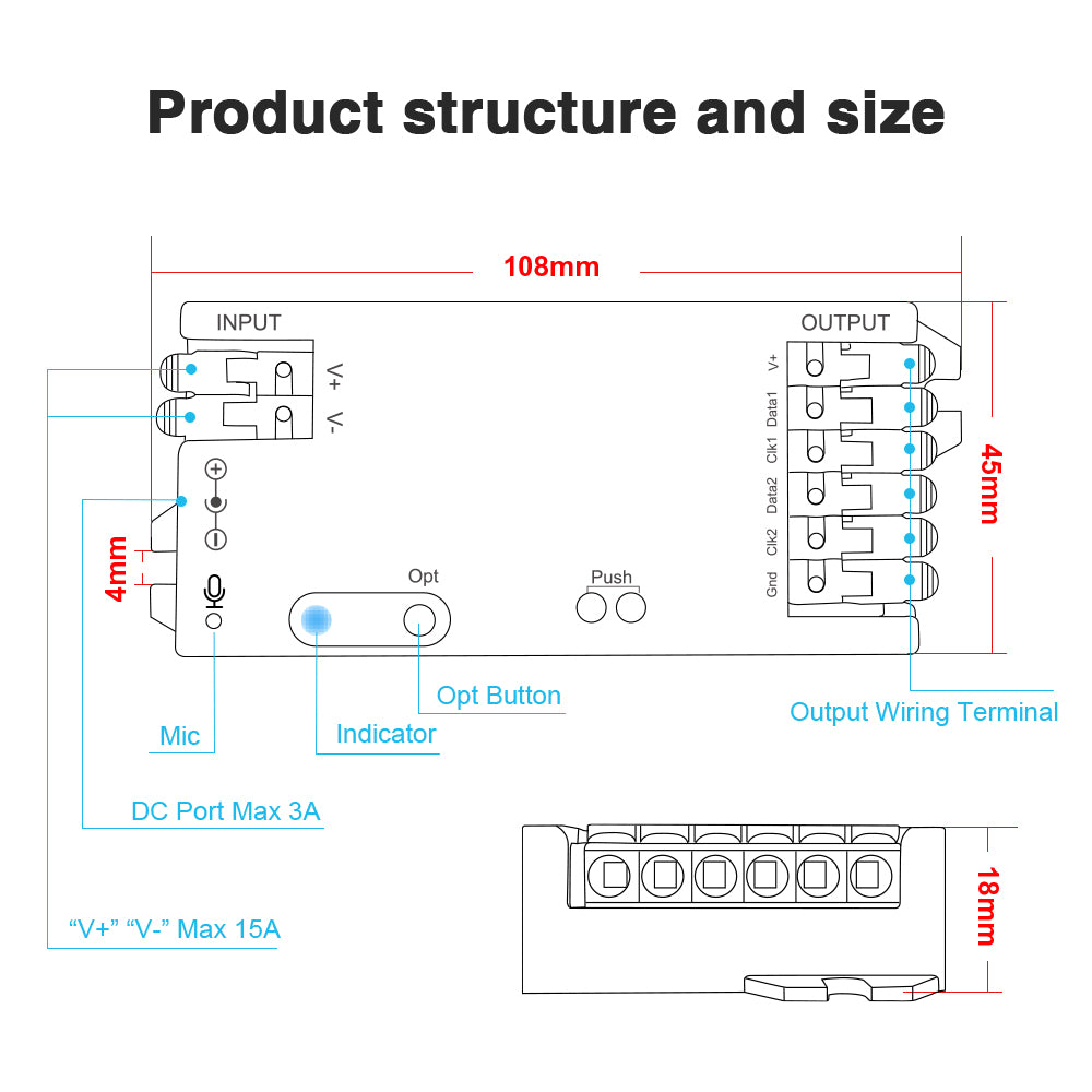 - Supports RGB, RGBW, CCT, RGBCCT addressable strips